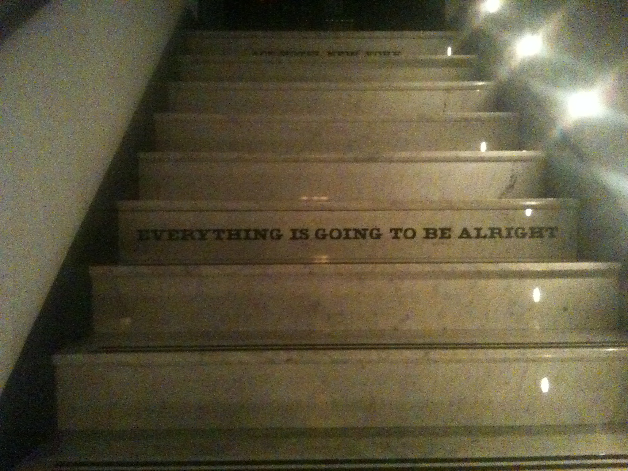 3. The new Breslin restaurant at the Ace Hotel. I ate there and had seafood sausage and braised fennel and it was truly unreal. They make their own salt and vinegar chips, too. And in the lobby you can sit and drink tea and work on your laptop (they provide free wifi) with other hipsters. The place is also resplendent with sweet touches. Like this message on the stairwell up from the loo. It made me stop and then my heart oozed relief.
