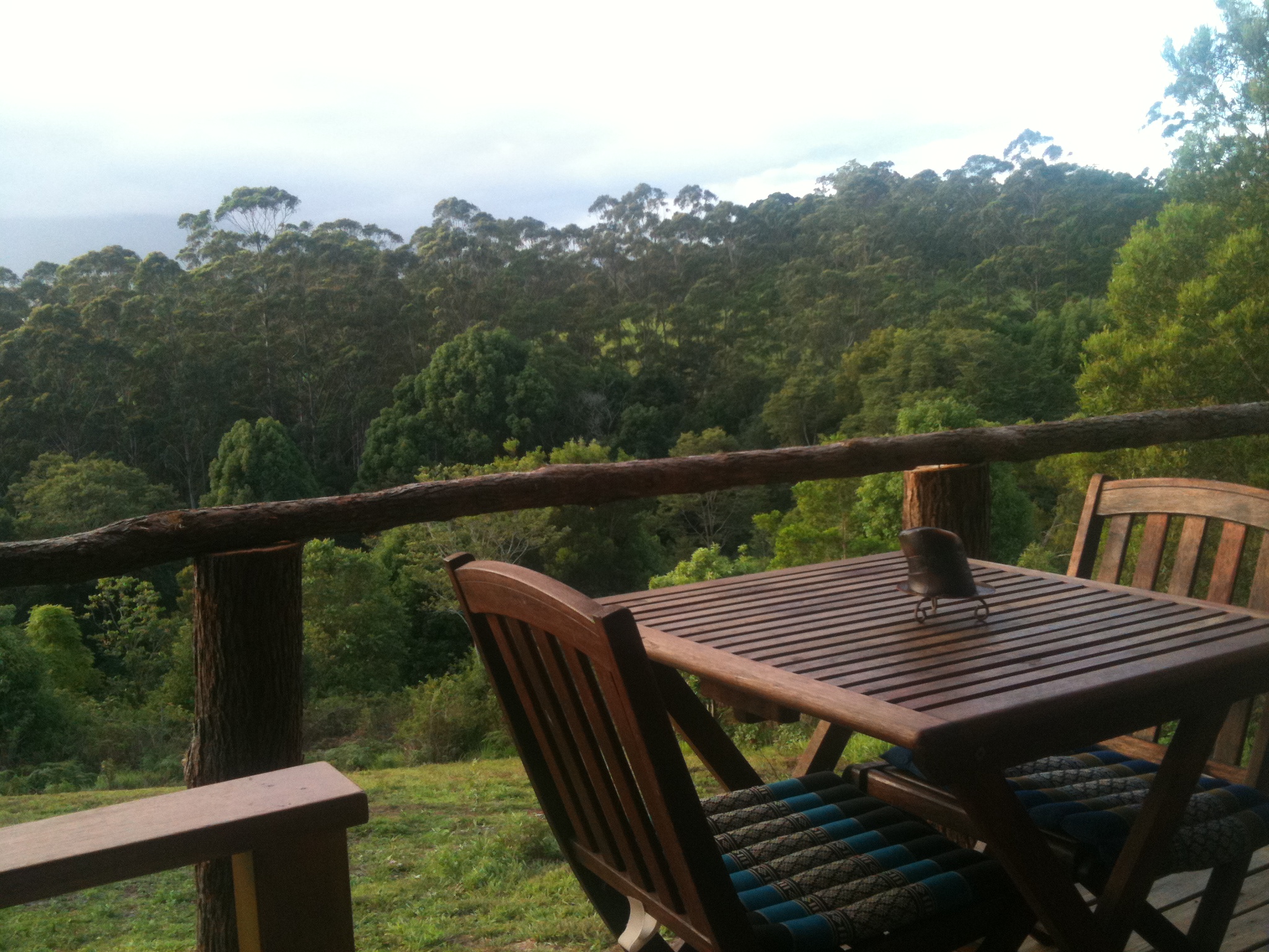 - In the morning I did yoga on the deck in the mist. John rumbled down in his ute and dropped off a breakfast hamper with pawpaw from the property. And I read Jonathon Frazen’s Freedom in the sun.