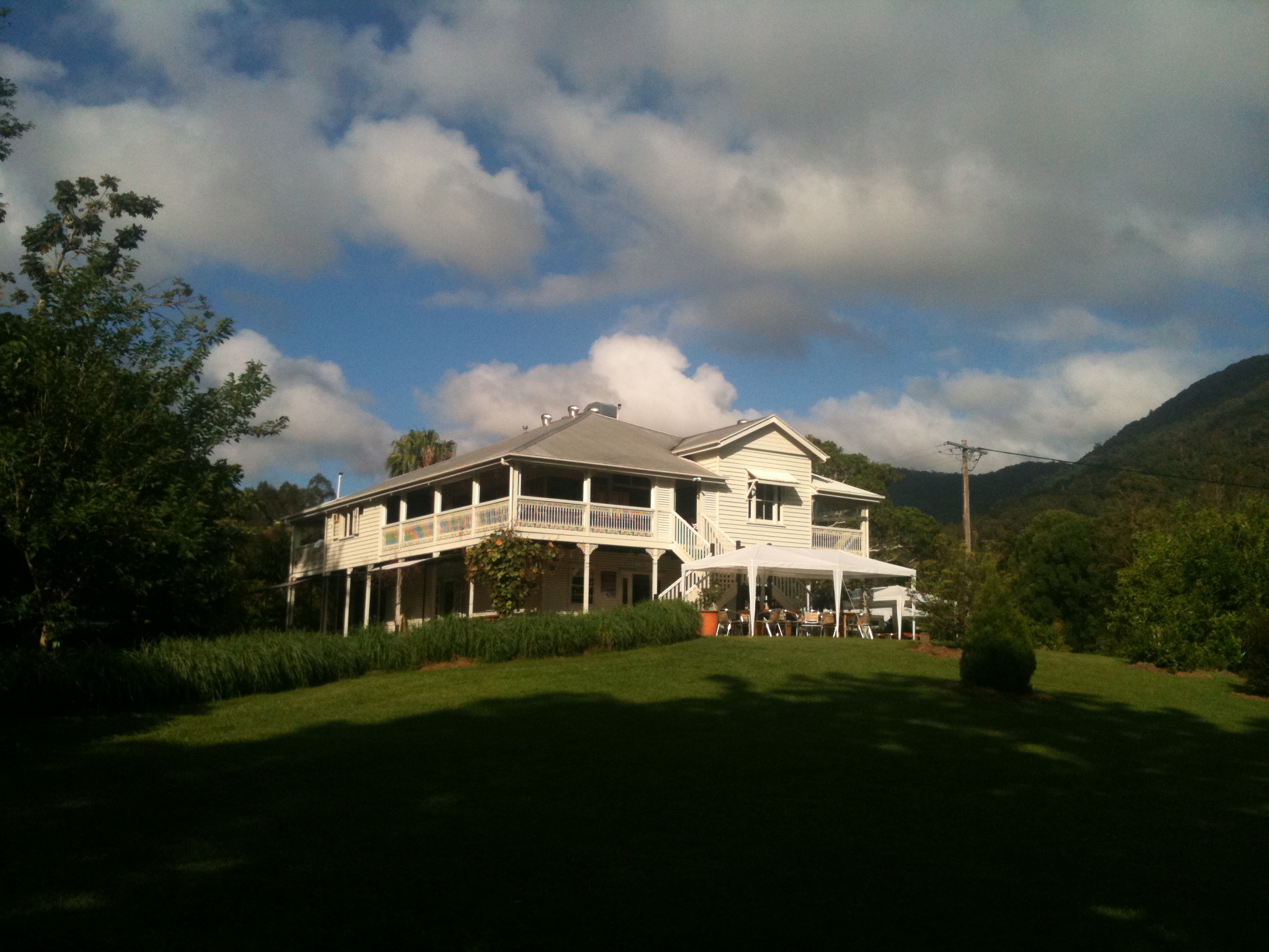 - Back on the winding, single-lane road through dairy country and forest again…I wound my way through towns called Mooball and Crabbes Creek, past old Post Offices converted into organic produce shops, to Mount Burrell, past Uki. And settled into my luxury tent at Silk Pavilions. These are essentially big army-style tents erected on a wooden platform overlooking a valley with wallabies grazing and Mt Burrell. Right there. In front. There’s a king-sized bed and a chandelier and an outdoor bath made from an old barrel. There’s a veggie garden – you can pick snow peas and tomatoes for snacks. Sue and John who built the tents and live just up the hill can deliver BBQ hampers. I joined them and the local farmers at the pub/café down the road – the Sphinx Rock Café. They do dinners on Friday nights and it was exactly the experience I felt like – you dine outside at a communal table and the food is all local produce. Try to make it on a Friday night if you can. Fun and wholesome. I had local chicken green curry with brown rice and poppadoms and shared red wine with the farmers under the stars and talked about their kids while dogs ran underfoot. So happy. So happy.