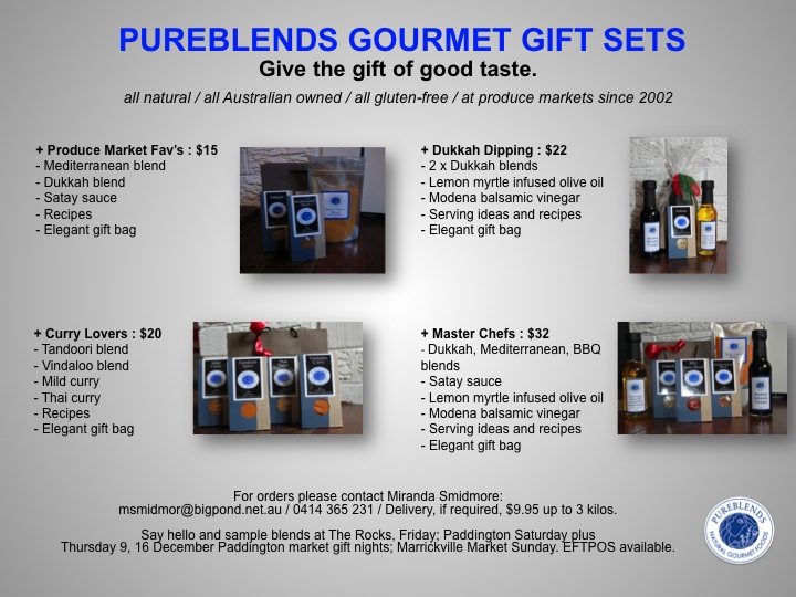If you want to try the blends yourself, check out The Rocks Markets on Fridays, Paddington Saturday plus Thursday 9, 16 December Paddington market gift nights, or at Marrickville Market on Sundays. Or contact Miranda Smidmore: [email protected].