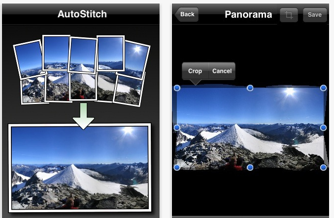 - Panorama apps are plentiful and joyous; they combine multiple photos into one much larger, infinitely wide-angle whole, automatically and without a computer. For example, you can shoot a bunch of photos fairly sloppily using whatever camera app you prefer, and then feed them into AutoStitch Panorama ($2). It magically analyzes the resulting shots and combines them, beautifully. This app doesn’t require you to line the left edge of each new photo with the right edge of the previous one, and it stitches photos both vertically and horizontally.