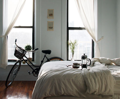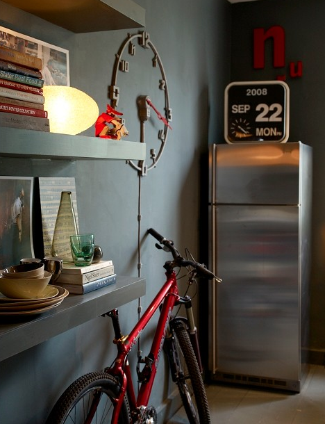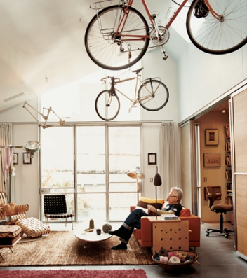 I’m often asked where I keep my bike at home. Most places I’ve lived, inside. Mostly for security. And rust. I found these lovely shots of bikes-as-interior-accessories the other day. Why not work them into your decor? You got any clever ideas? Send them in…