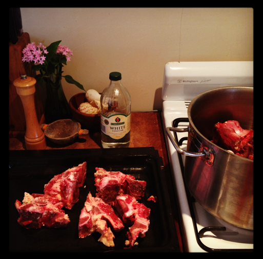 I’ve mentioned on twitter that I’ve been making bone broth and some of you asked for the details. And so I oblige! I’ve become a big fan for a bunch of overwhelming reasons I’ll outline below. Sally Fallon introduced me to the stuff in Nourishing Traditions and since then I’ve followed a community of people who can’t stop raving about it. A lot of nutritionists steer their clients to simply drink bone broth. That’s it. The stuff is so full of good stuff…who needs supplements?