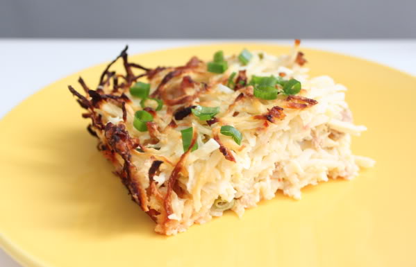When ready to cook, heat oven to 200 degrees. Bake for 45 minutes then cover the pan and bake for 25 minutes more. Let cool 15-20 minutes so the casserole sets before cutting into it.
