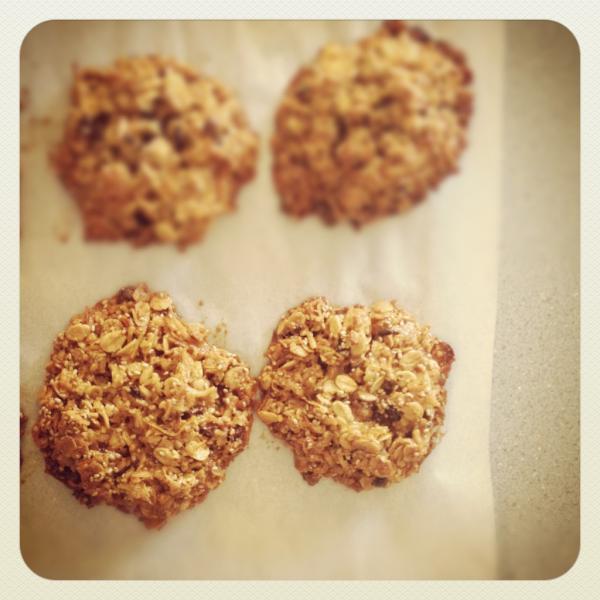 Use a tablespoon to measure out equal amounts of the mixture on a lined baking tray. Press down the balls firmly onto the tray. Bake in the oven for 12- 15 minutes. Watch them as they tend to brown easily.