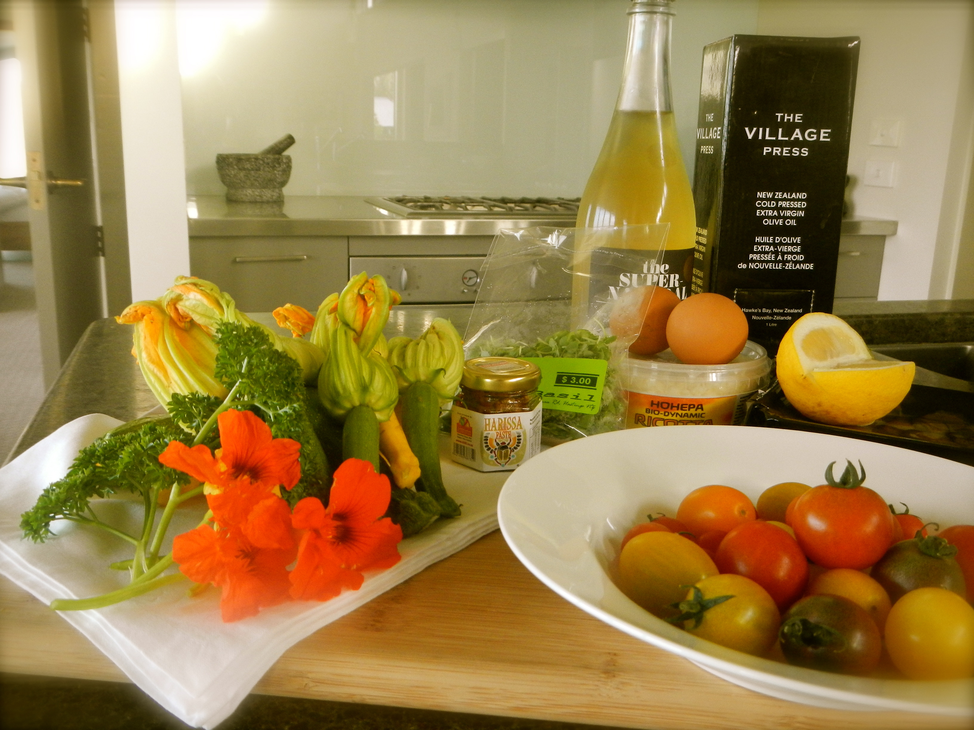 Hawke's Bay Farmers' Market finds Stuffed zucchini flowers with ricotta and cheddar and herbs and lemon zest