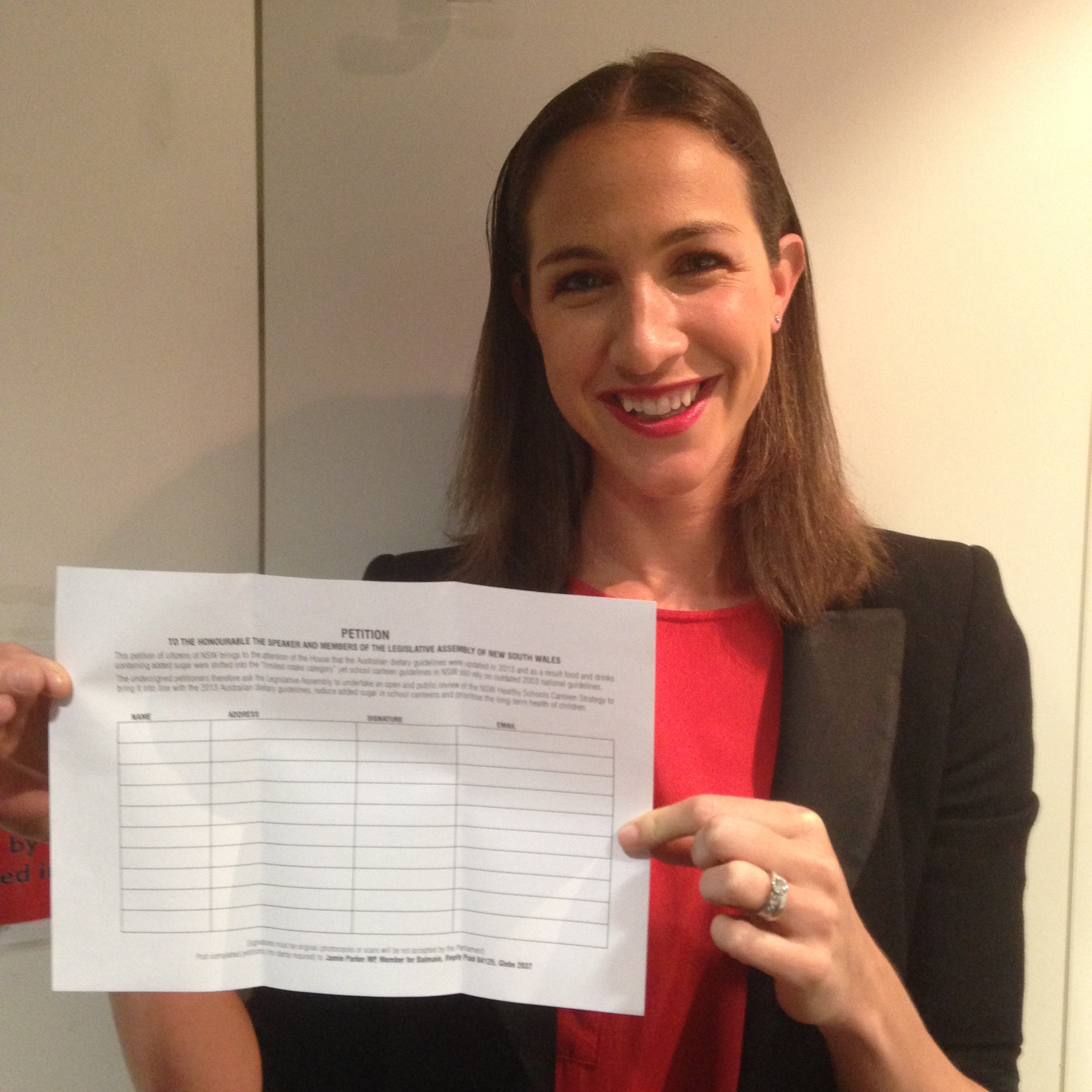 I’m not sure if you’re aware, but the canteen guidelines for schools around Australia are a shemozzle. I’m trying to change them, nationwide, starting in NSW, to reflect the Australian Dietary Guidelines. So our kids aren’t left eating Paddlepops and Dim Sims for lunch. Jamie Parker MP, Ryan Parks MP, Dr Kieron Rooney and Rosemary Stanton are joining me in the fight.