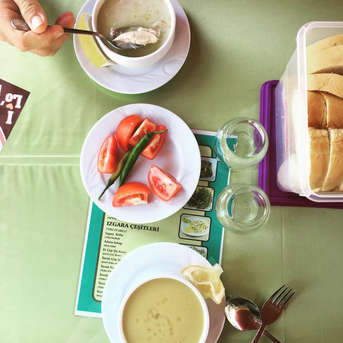 In Turkey you’re served a whole heap of vegetable-based meze and bread before the main meal. It can throw you into filling up before the main event. But, hey…