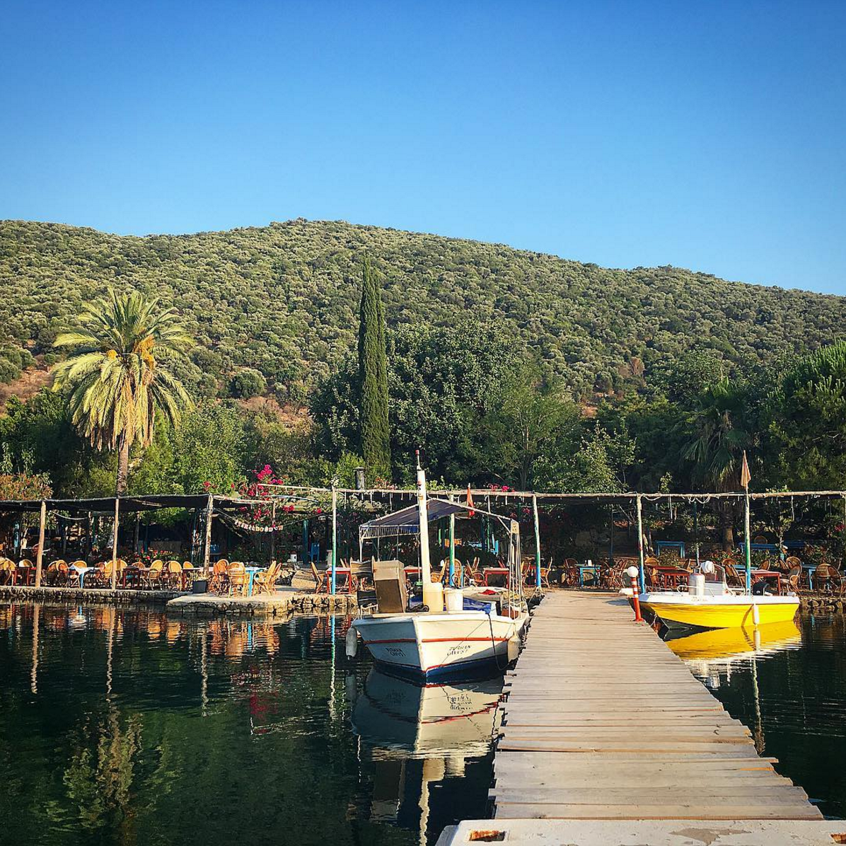 22 Fathom Bay. Come for the restaurant on a boat run by a Dad and daughter team. Dad shot the wild boar and cooked it up into a stew with apricots and tomatoes in a hollow cut out of a boulder. There was a telly strung up with boat ropes from a tree, ready for the soccor World Cup screening that night. The stew was extraordinary, so too the meze.
