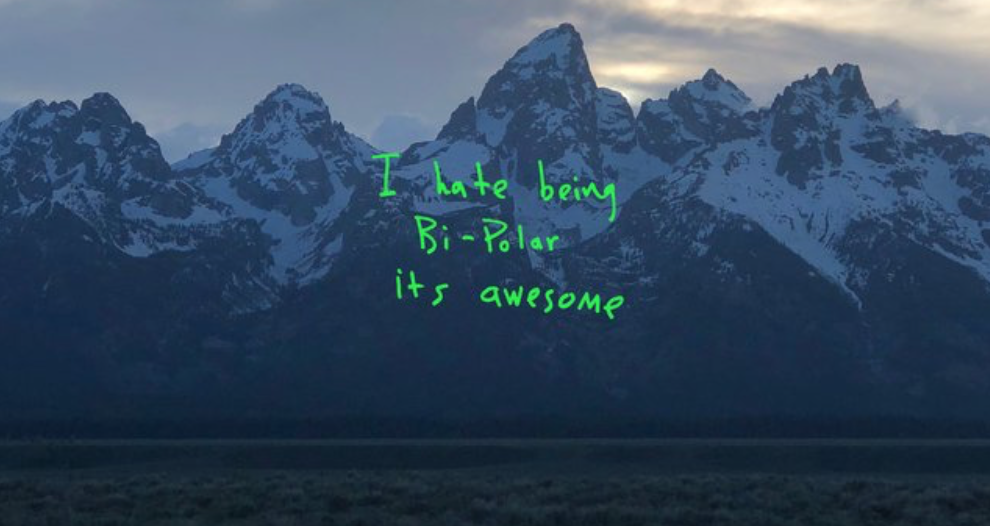 I’m being asked a bit about Kanye’s recent album Ye, which I listened to over the weekend as part of my “remain pop culturally relevant in my 40s” project. (I read recently we stop exploring music in our 30s…I wish/beg to differ; I’m also resisting increasing the font size on my phone, but that’s another story.) Kanye uses the album to come out as bipolar. The album art from the outset sings it: